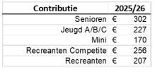 Bij een lidmaatschap hoort ook een contributie, welke je in onderstaand schema vind.